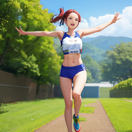 動きやすそうな体操服で走っているスポーツ女子の絵、若い女の子がへそ出しで恥ずかしくないのか