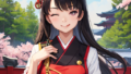 青髪短髪美少女の制服絵、こっちをじっと見ている、よくアイロンがけされてきれいな恰好、頭にはベレー帽?
